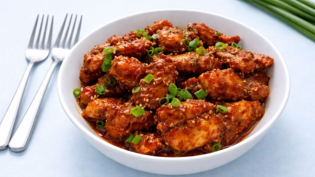 Schezwan Chicken (also spelled Szechuan Chicken or Sichuan Chicken) is a popular Indo-Chinese dish — crispy fried chicken tossed in a bold, spicy, tangy Schezwan sauce. It originated from the Sichuan province of China, famous for its fiery, numbing flavour profile using Sichuan peppercorns and red chilies.